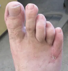 Pre-surgery and post-surgery for overlapping 5th toe: